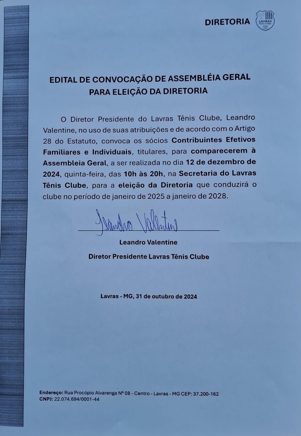 Este é um momento importante para o futuro do nosso clube, e a participação de todos é fundamental. Cada sócio contribuinte efetivo, familiar ou individual, terá direito a um voto, sendo vedado o voto por procuração. Contamos com a presença de nossos associados para exercerem seu direito de voto e contribuírem para a continuidade de nossa gestão.